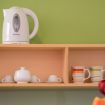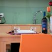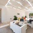 Soggiorno con cucina, linea elettrodomestici con piano ad induzione, forno a microonde, frigorifero, bollitore elettrico, macchina espresso, utensili e servizio da tavolo. Aria condizionata presente in area living.