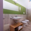 Bagno con finestra, ampia e moderna doccia, bidet ed ampio tavolo con lavandino, asciugacapelli e linea di cortesia.
